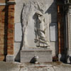 Череп со скрещенными костями - распространенная в мемориальной пластике эмблема смерти, напоминающая о краткости жизни и неизбежности ее конца. В религиозной символике часто изображалась, как "голова Адама" под крестом (существует легенда, что крест, на котором был распят Иисус Христос, стоял над могилой Адама похороненного под Голгофой).