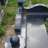 Фотография № 188. Солидный оригинальный цоколь для небольшого места погребения. Насыщенный темный цвет полированного гранита выглядит подобающе скорбно, печально и торжественно. Четкие выверенные линии основы смягчены плавными, изогнутыми углового элемента. Законченной композицию делает большой каменный шар, венчающий стилизованный опорный столб. Стоит сдержанный, величественный и при этом яркий заметный цоколь не слишком дорого.